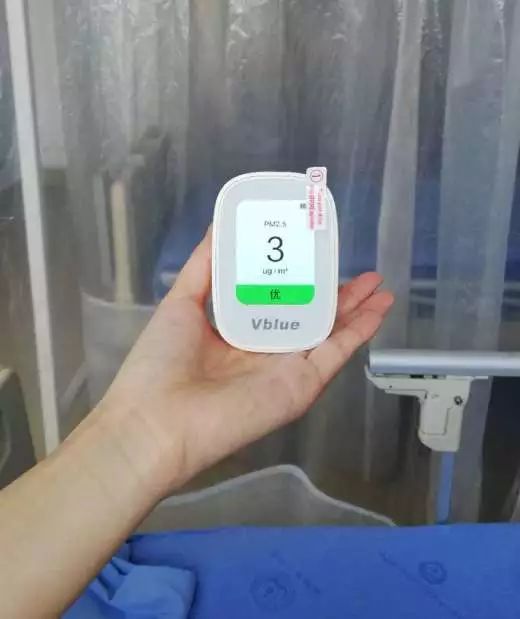 而層流床(單人無菌室)運(yùn)行時(shí)頂部的風(fēng)機(jī)吸入環(huán)境空氣,經(jīng)光觸媒空氣凈化消毒系統(tǒng)濾過成為潔凈無菌空氣,再以層流的方式送回,并使床內(nèi)區(qū)域保持正壓,防止外面塵埃粒子進(jìn)去,用儀器測(cè)得PM2.5結(jié)果如下: