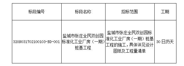 本招標(biāo)項(xiàng)目鹽城市張莊全民雙創(chuàng)園標(biāo)準(zhǔn)化工業(yè)廠房已由鹽城市鹽都區(qū)發(fā)展和改革委員會以關(guān)于鹽城市張莊全民雙創(chuàng)園建設(shè)投資有限公司建設(shè)張莊全民雙創(chuàng)園標(biāo)準(zhǔn)化工業(yè)廠房項(xiàng)目備案的通知-都發(fā)改審(2016)281號批準(zhǔn)建設(shè)。招標(biāo)人為鹽城市張莊全民雙創(chuàng)園建設(shè)投資有限公司,工程所需資金來源自籌。項(xiàng)目已具備招標(biāo)條件,現(xiàn)對該項(xiàng)目的鹽城市張莊全民雙創(chuàng)園標(biāo)準(zhǔn)化工業(yè)廠房(一期)樁基工程進(jìn)行公開招標(biāo)。本次招標(biāo)對投標(biāo)報(bào)名人的資格審查,采用資格后審方法選擇合格的投標(biāo)申請人參加投標(biāo)。