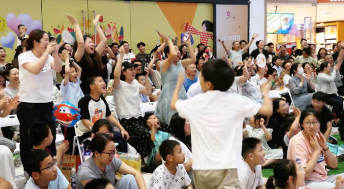 6月28日,鹽都萬達廣場的一樓中庭化作沸騰的綠茵戰(zhàn)場,300平方米的超清巨幕上清晰展現(xiàn)球員們的每一次拼搶、每一腳射門,現(xiàn)場座無虛席,球迷們目不轉(zhuǎn)睛緊盯賽況。隨著比賽進入白熱化,助威聲、歡呼聲如浪潮翻涌,沉浸式觀賽體驗將賽場的熱血與激情完美復(fù)刻。