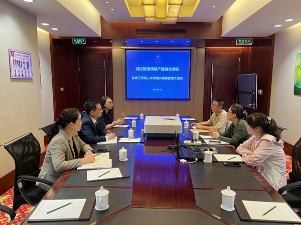 8月29日下午,鹽城工學院人文社會科學學院酒店管理系劉鵬、葛江徽等老師來到驛都大酒店就產(chǎn)教融合開展座談與實地調(diào)研,酒店人力資源總監(jiān)蔡秀霞、房務總監(jiān)唐家奎、餐飲總監(jiān)蔡萍參加了調(diào)研交流活動。
