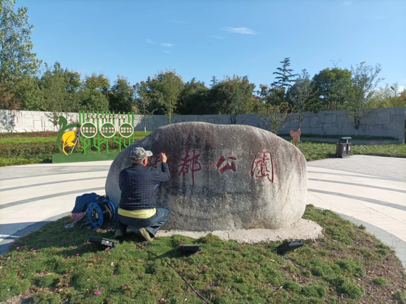 潤都公園主入口的特色浮雕景墻上嵌有“鶴舞東方”、“鹿騰濕都”等字樣,設(shè)計(jì)方案充分融入鹽城地方元素,以“鶴”、“鹿” 為主題,結(jié)合優(yōu)雅靈動的浮雕畫,突出鹽城濕地廣闊、物種豐富、生態(tài)良好的特點(diǎn),充分體現(xiàn)了鹽城自然環(huán)境的優(yōu)越性。 美景共賞,更需要共同去維護(hù)。近日,公園工作人員對東門入口特色浮雕景墻和北門入口景觀石進(jìn)行清洗打磨、破損修復(fù)、字樣出新等處理。翻新工作保護(hù)了經(jīng)自然侵蝕的磨損景觀,改變了長久以來暗淡的色彩,也提升了公園入口景觀效果。