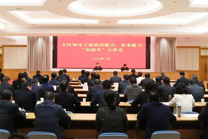 3月23日,全區(qū)領(lǐng)導(dǎo)干部政治能力、業(yè)務(wù)能力“雙提升”大講堂開班。區(qū)委副書記、代區(qū)長臧沖出席開班式并講話。他強(qiáng)調(diào),要在全區(qū)大興“學(xué)習(xí)研究、苦干實(shí)干”之風(fēng),全面提升各級干部促發(fā)展、惠民生、防風(fēng)險(xiǎn)能力水平,在推進(jìn)中國式現(xiàn)代化鹽都新實(shí)踐中實(shí)干爭先。區(qū)人大常委會主任葛建華,區(qū)政協(xié)主席王鐵根等區(qū)四套班子領(lǐng)導(dǎo)出席開班式。