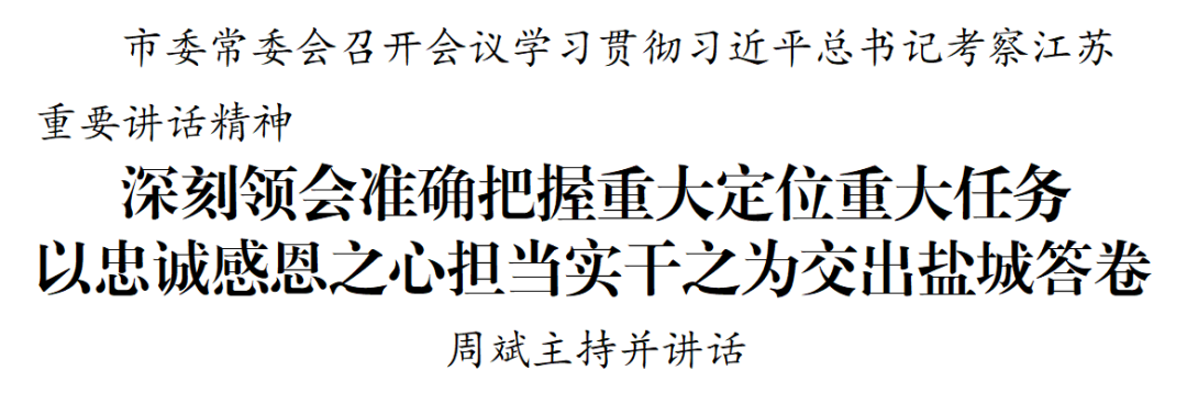 市委常委會召開會議學(xué)習(xí)貫徹習(xí)近平總書記考察江蘇重要講話精神